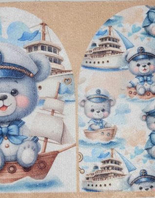 Ce coupon, imprimé sur tissu éponge, permet de confectionner 1 gant de toilette.